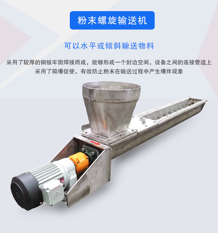 粉末螺旋輸送機(jī)是專門針對(duì)粉末物料輸送而設(shè)計(jì)的一款輸送機(jī),粉末螺旋輸送機(jī)采用全密封結(jié)構(gòu),可避免粉末在輸送過(guò)程中的粉塵污染.