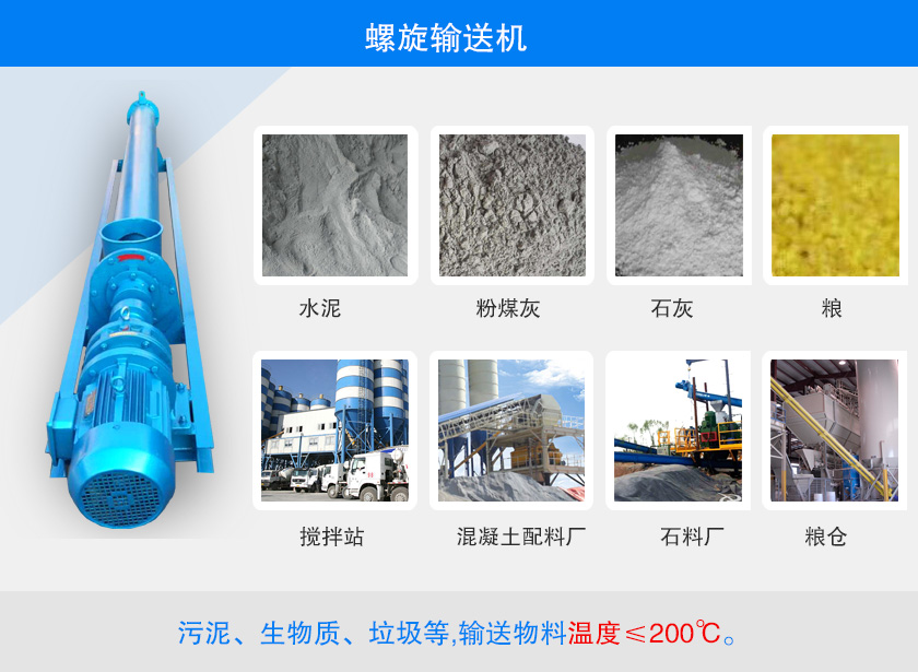 螺旋輸送機(jī)可以輸送可以水平,傾斜或垂直輸送粉狀,顆粒狀及小塊狀物料,同時(shí)具備混合、攪拌、冷卻功能,有軸螺旋輸送機(jī)可以無粘性的干粉物料和小顆粒物料.(例如:水泥、粉煤灰、石灰、糧等),無軸螺旋輸送機(jī)適合輸送機(jī)由粘性的和易纏繞的物料。(例如:污泥、生物質(zhì)、垃圾等,輸送物料溫度≤200℃。螺旋輸送機(jī)適用于攪拌站,水泥廠、混凝土配料廠,石料廠,糧倉等場合。